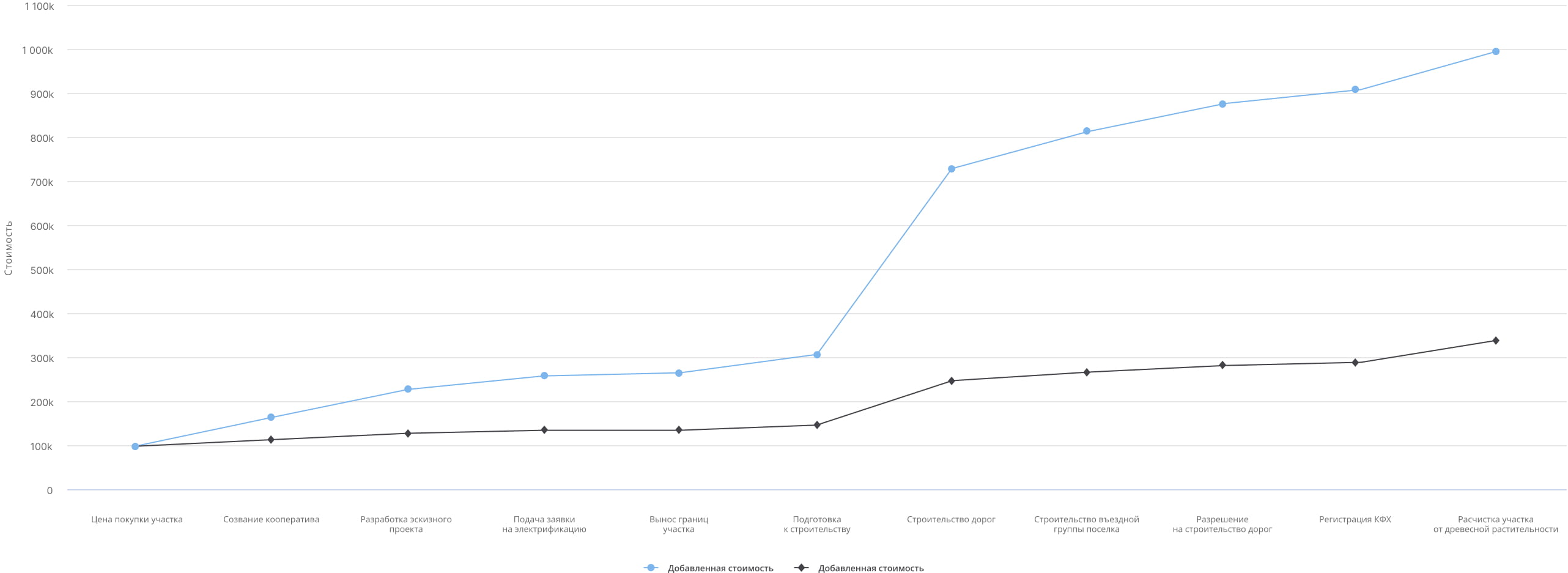 | 5 | Вынос границ участка и установка межевых знаков | 5 500 | 17 325 | 190 500 | 496 225 | 421% |
